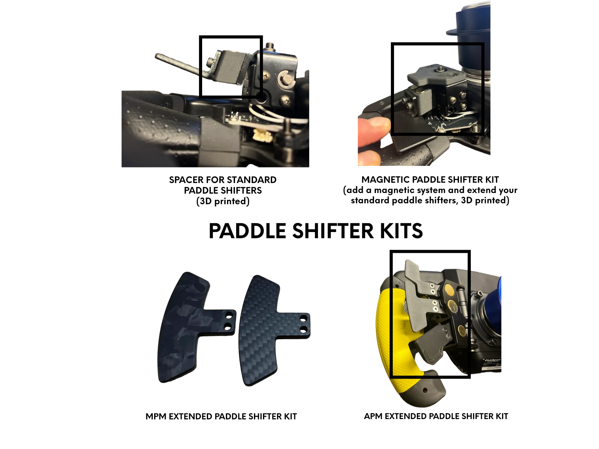 PADDLE SHIFTER KIT - 3D printed Standard Spacer Kit, or 3D printed Magnetic Shifter kit, or MPM extended paddles kit or APM extended paddles kit made in Forged or Twill Carbon.